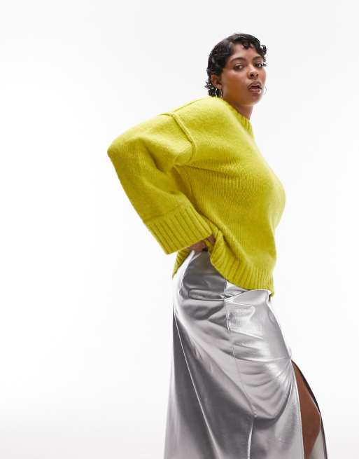 Topshop Curve knitted crew neck exposed seam jumper in green