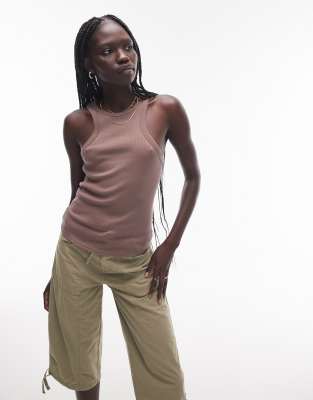 Topshop cut away racer vest in mocha