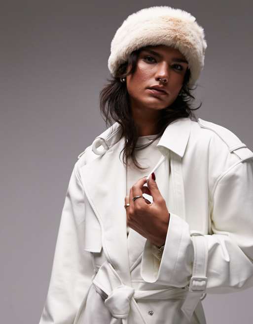 Topshop Daisy faux fur trim docker hat in off white