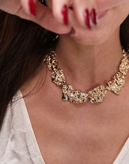 Topshop Delhi statement molten necklace in gold tone