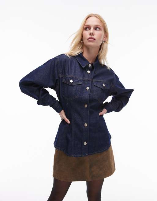 Topshop denim cinch shirt in raw indigo