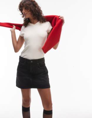 Topshop denim mini pelmet skirt in washed black