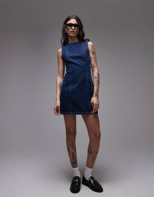 Topshop denim mini shift dress in mid blue