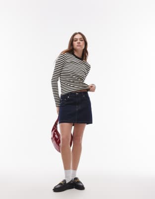 This skirt is crafted from non-stretch denim in a dark-blue wash. It features a high-rise waist, belt loops, a concealed fly, five functional pockets and is cut with a regular fit.