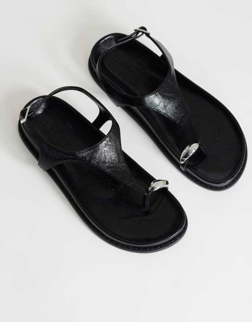 Topshop Elsie hardware footbed sandal in black