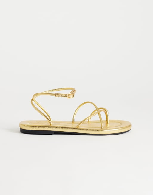 Topshop Emma strappy flat sandal in gold