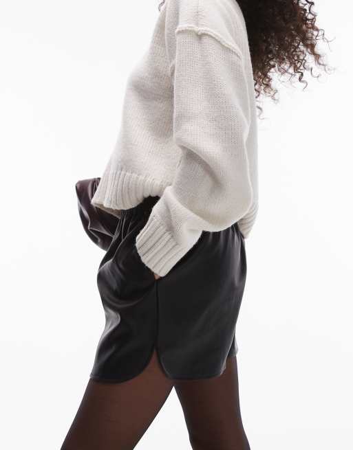 Topshop faux leather runner short in black
