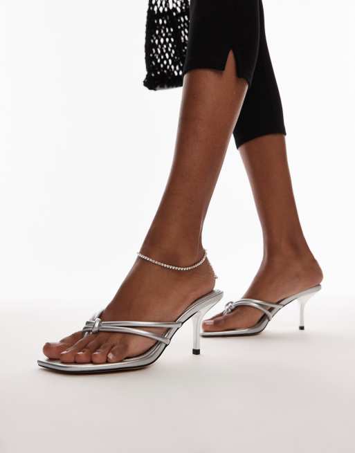 Topshop Femi toe post heeled sandals with knot detail in silver