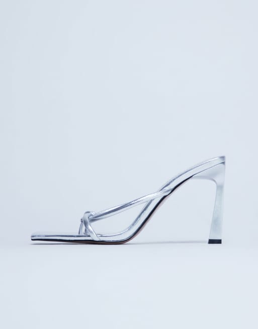 Topshop Flora strappy toe loop high heel in silver