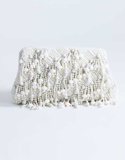 Topshop Garison small bead and embellished clutch in white