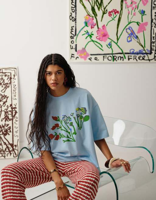 Topshop graphic Bradley.B back print t-shirt in light blue