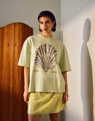 Topshop graphic Cap D'Antibes shell oversized tee in green