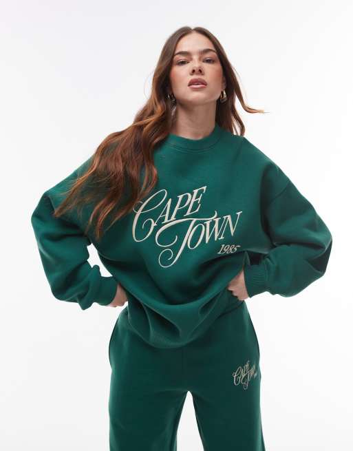 Topshop graphic Cape Town oversized sweatshirt co-ord in dark green