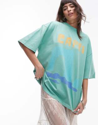 Topshop graphic Capri oversized tee in green
