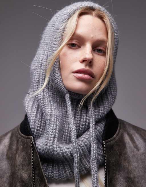 Topshop Hero ribbed balaclava in grey marl
