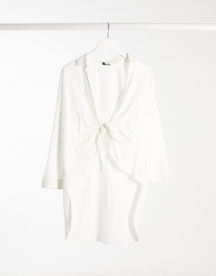 Topshop hi low beach shirt in white