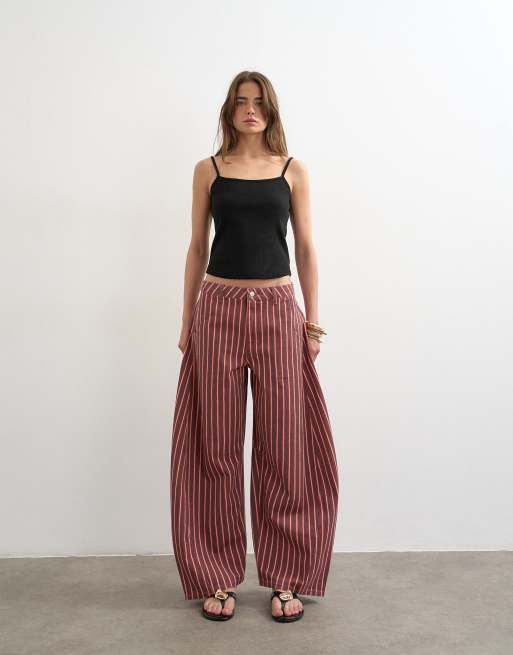 Topshop Horseshoe mid rise jean in pink and red stripe