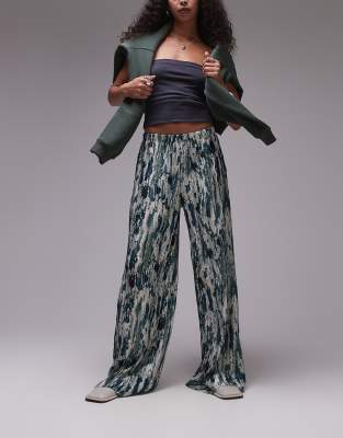 Topshop ink spill print plisse wide leg trousers in multi