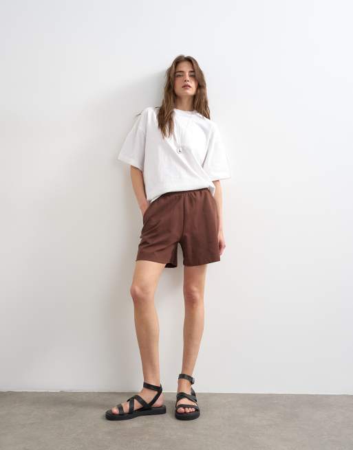 Topshop interlock jogger shorts co-ord in chocolate brown