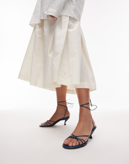 Topshop Itzel tie up mid heel sandal in teal