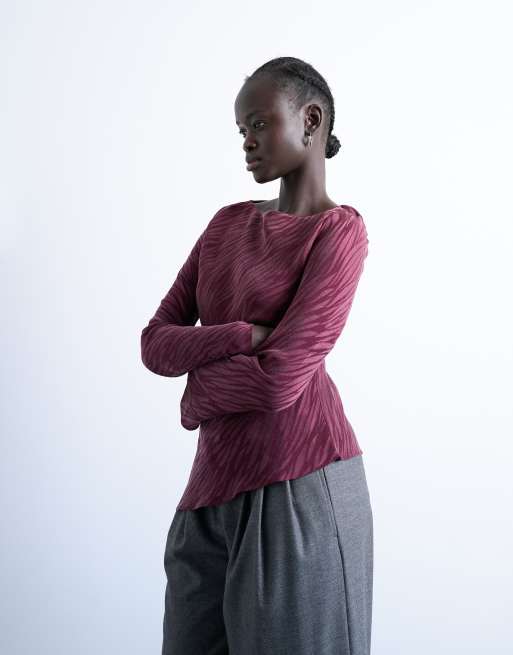 Topshop jacquard zebra slash neck long sleeve in burgundy