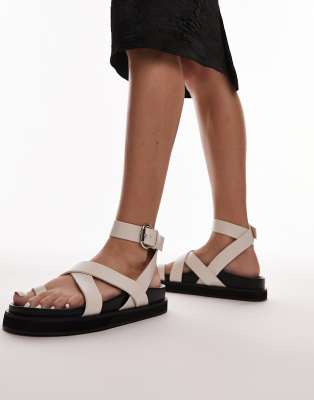 Topshop Jaydee strappy sandal with toe loop in off white