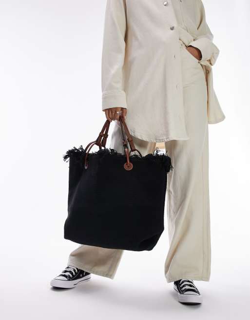 Topshop Jordan fringe canvas bag in black