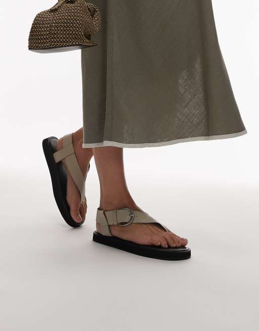 Topshop Kam real leather toe thong flat sandal in off white