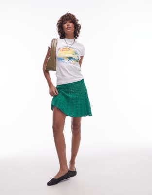 Topshop knitted flippy mini skirt in green