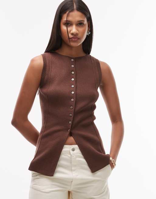 Topshop knitted longline waistcoat in chocolate
