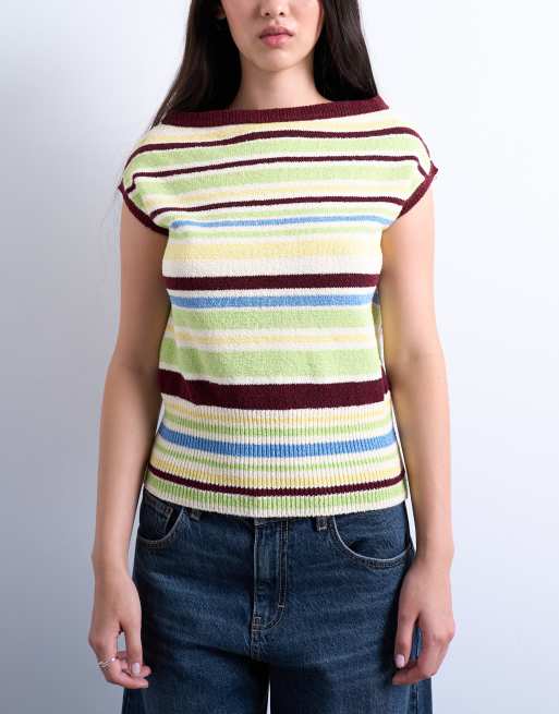 Topshop knitted one shoulder top in multi stripe