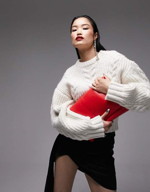 Topshop knitted premium cable ovoid sleeve jumper in cream