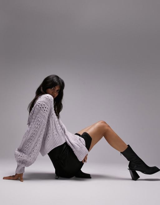 Topshop knitted textured cable jumper in lilac
