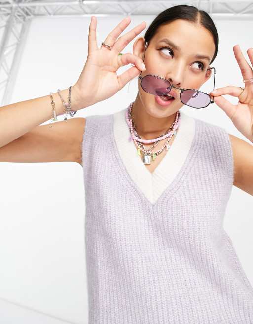 Topshop knitted v-neck marl lilac tank