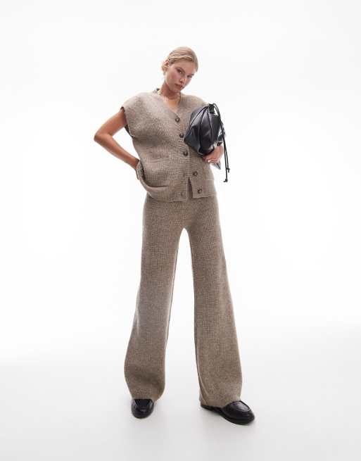 Topshop knitted v-neck relaxed vest and trousers co-ord in oat