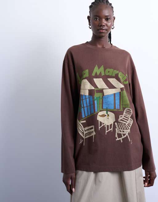 Topshop La Marais graphic skater tee in brown