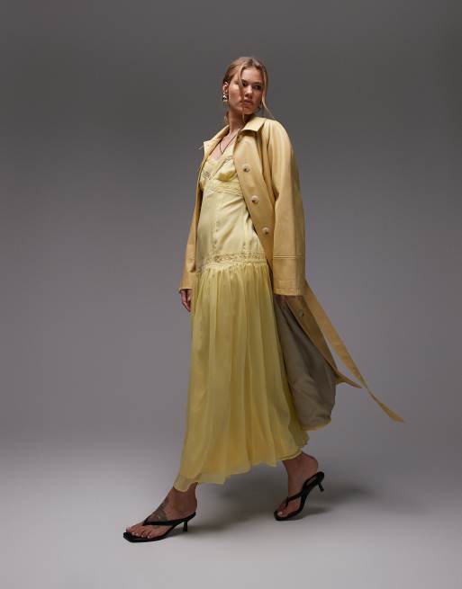Topshop lace insert chiffon midi dress in yellow