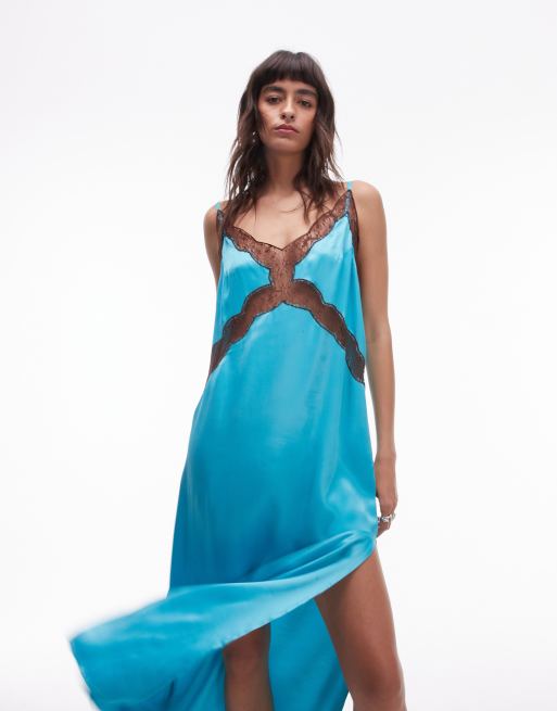 Topshop lace insert midi dress in turquoise