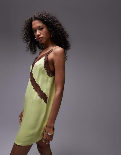 Topshop lace insert mini dress in lime green