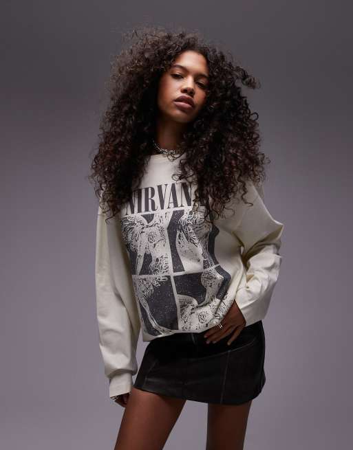 Topshop licence graphic Nirvana long sleeve skater in ecru