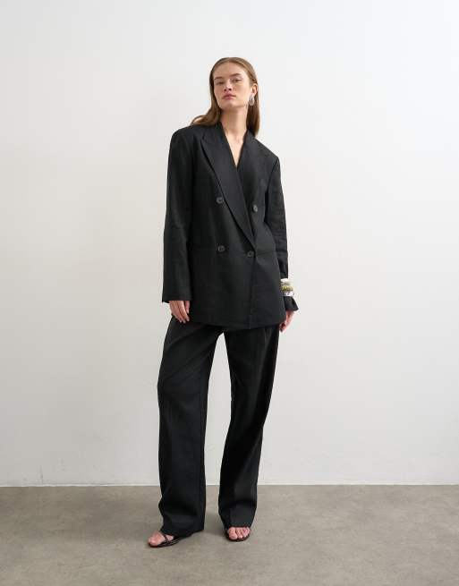 Topshop linen barrel leg trouser in black