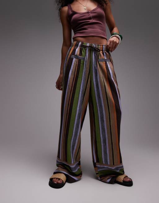 Topshop linen straight leg trouser in brown stripe