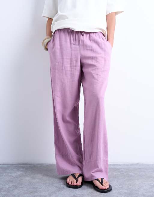Topshop linen straight leg trouser with deep cuff in purple