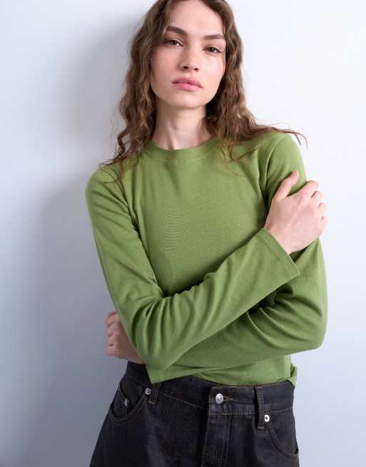 Topshop long sleeve everyday tee in green