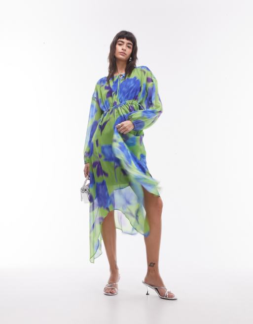 Topshop long sleeve v-neck chuck on midi dress in multi