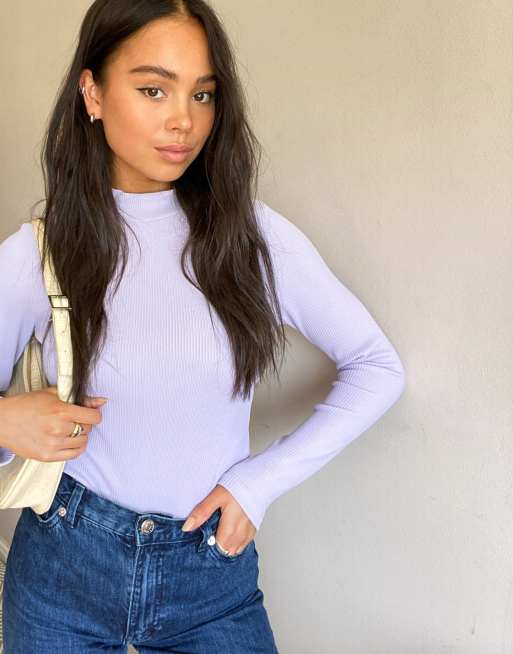 Topshop longsleeve funnel bodysuit in blue