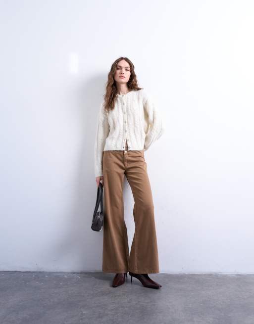 Topshop low rise flared trouser in brown