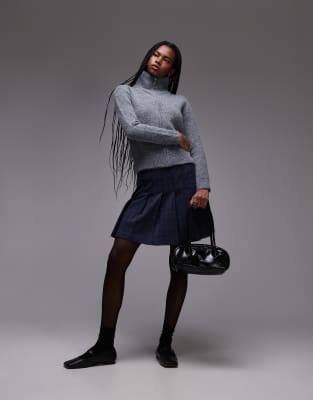 Topshop low rise pleat mini skirt in check print
