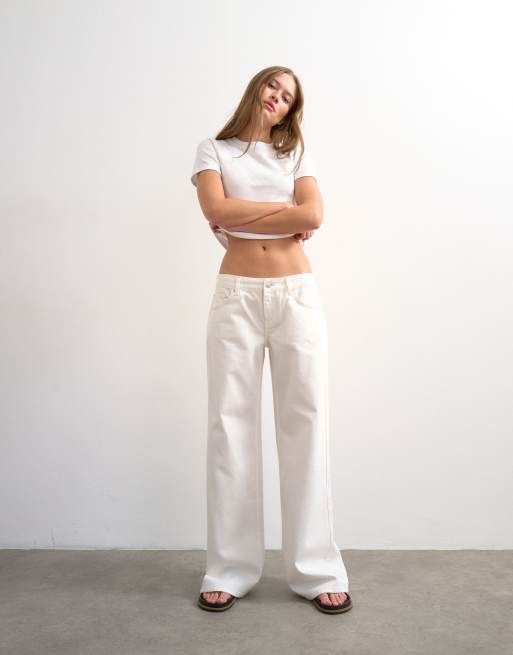 Topshop low rise wide leg jean in bone
