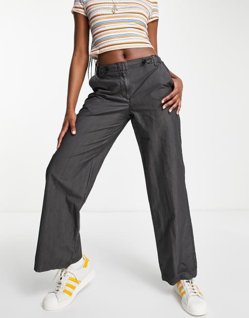 Topshop low rise wide leg nylon cargo trouser in grey